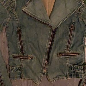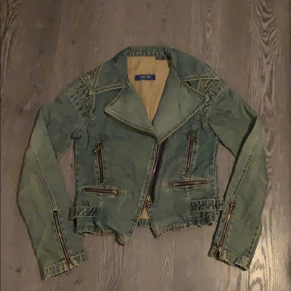 Worn wash jean jacket from Zara. It is form fitting and hits and the waist. It has tones of zippers and a really cool collar that looks great zipper up all the way or left unzipped. The sleeves are quite long and gives a dressed up look.