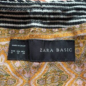 Khaki Green, textured cotton with embroidered black & white trim. Cotton/wool blend. Made in Spain by Zara.