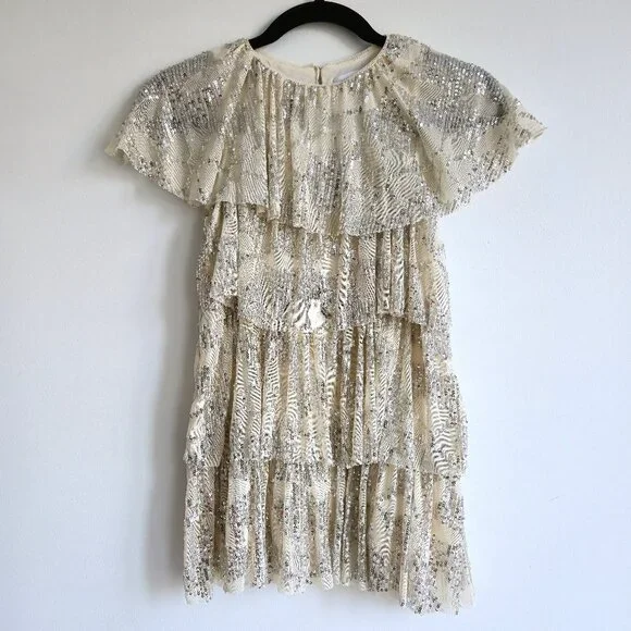 Zara Kids Champagne & Silver Sequin Party Dress | Size 7