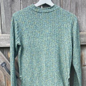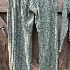 Zara Kids coordinated ribbed green set. Mock neck. Pit to pit 17". Flowing long pants. 37" waist to cuff. Casual, soft and comfortable. Size 13-14. Materials tag is missing but likely a polyester blend. Open to bundling!