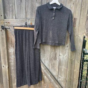 Zara Kids Coordinated fall set in grey. Long sleeve collared top with three buttons. Matching long and flowing pants. Very comfortable and soft. Size 13-14. Pit to pit measures 17". Pants waist to ankle measures 33". No stains and in very good condition.
