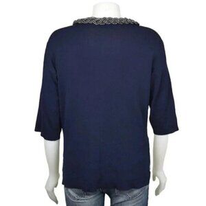 Zara Knit Blue Sweater Silver Necklace Neckline Size Small