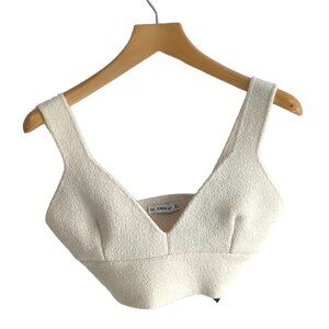 This is a cream coloured stretchy knit cropped bra top by Zara Knit.