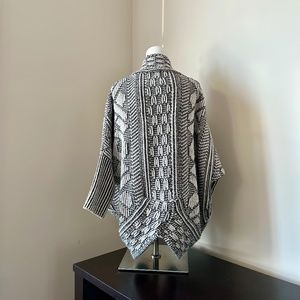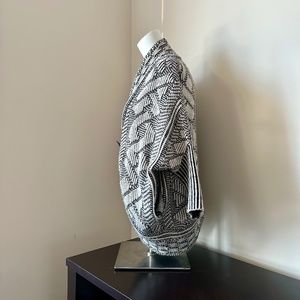 Zara knit black and white chunky cardigan, size medium. 3/4 batwing sleeve. Button closure. Care tag missing.