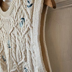 Beautiful creamy white knit with sweet blue flowers embroidered across the front and back.