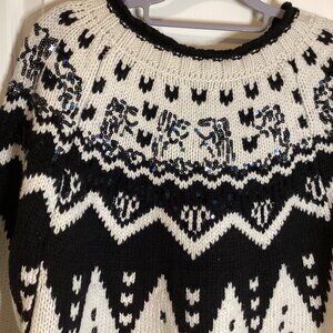 Zara Knit Limited Edition Women's Wool Blend Chunky Knit Sweater Size M Sequin Black White