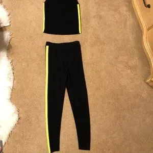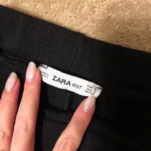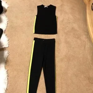 Zara black knit set with green stripe on side. Super comfy and cute. In decent condition, a little bit of pilling but could be fixed easily with a razor or sweater shaver. Size small.