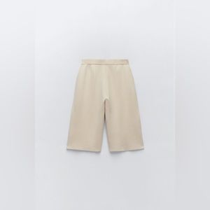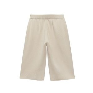 Zara Knit Shorts Women’s Size Small Neutral Beige Nude Long High Waisted Stretch
