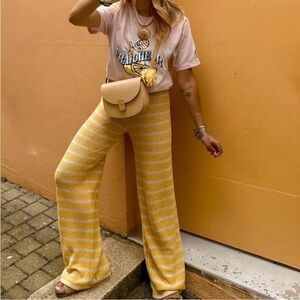 Zara Knit Trousers Coverup Pants Striped Straight Leg