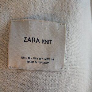 Zara Knit waterfall shawl heavy cardigan with double layer knitting, black outside and white inside. Has a draped open front, it has a high-low style. Size medium.
