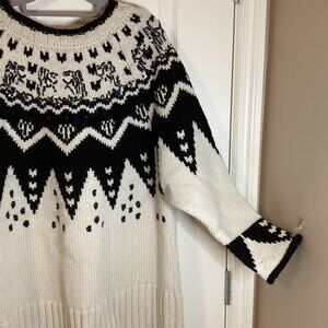 Zara Knit Women's Wool Blend Chunky Knit Sweater Black White Size M Oversized