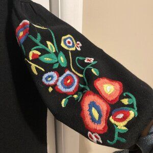 Zara Knits Black Embroidered Midi Dress, Size Small