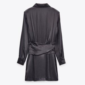 Zara Knotted Satin Effect Shirt Dress