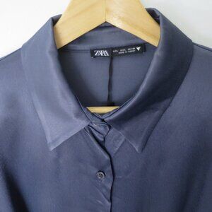 Zara Knotted Satin Effect Shirt Dress Size L