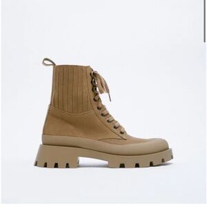 Zara LACE-UP TRACK SOLE LEATHER ANKLE BOOTS