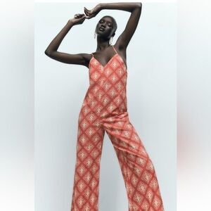 ZARA LONG PRINT JUMPSUIT TERRACOTTA SZ US XL