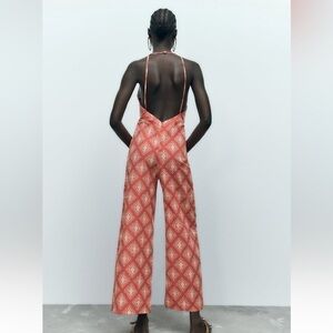 Zara LONG PRINT JUMPSUIT TERRACOTTA SZ US XL