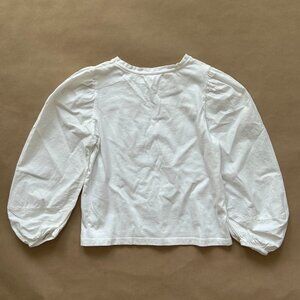Zara white cotton jersey tee shirt with shirting material puffy sleeves. Seamed details.