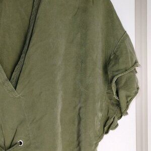 Zara Lace-Up Corset V-Neck Crop Top Olive Green M
