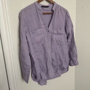 Zara Lavender 100% Linen Blouse boho beachy summer S
