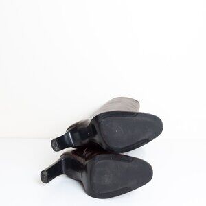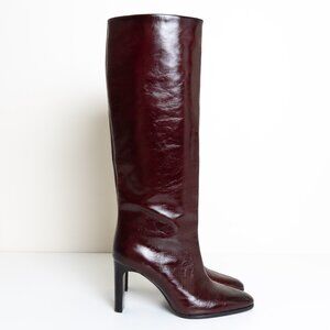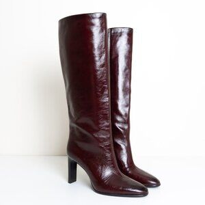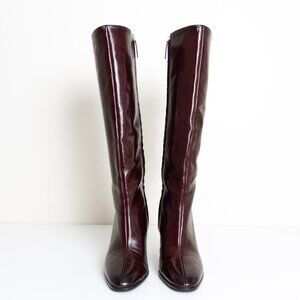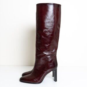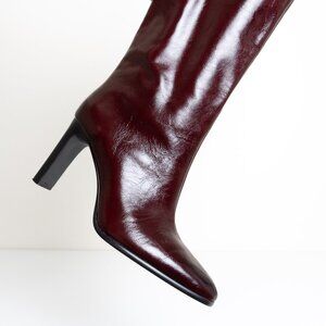 Zara Leather Boots Burgundy Wide Heel Tall Classy EU 42