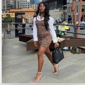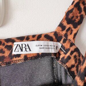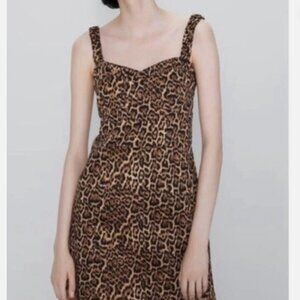 Zara Leopard Print Bustier Corset Ruched Straps Mini Dress Size Medium