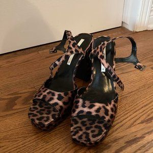 Zara Leopard Print High Heeled Platform Sandals