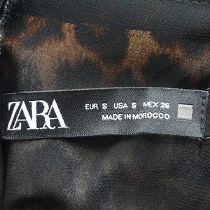 Zara Leopard Print Puff Sleeve Ruched Dress