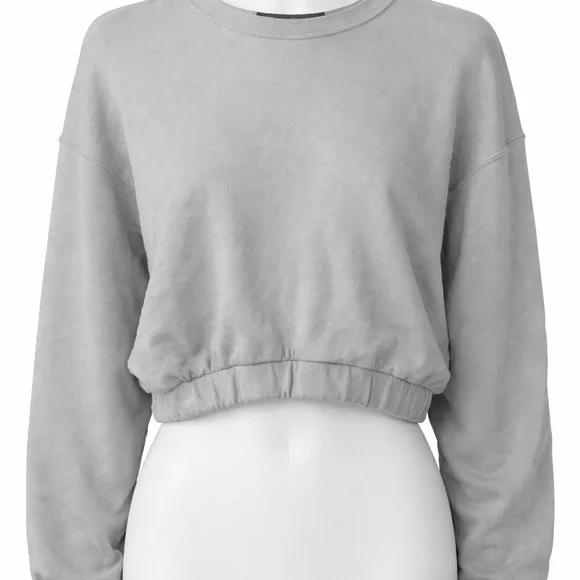 Cropped crewneck sweatshirt in light gray. Relaxed long sleeves with drop shoulders. Elasticated hem for a snug, modern silhouette. Soft, lightweight knit for everyday wear. Size L.