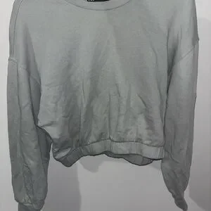 Zara Light Gray Cropped Crewneck Sweatshirt