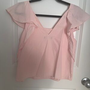 Chic blouse with ruffle details. Soft pink hue. Ideal for versatile styling. Is double lined.