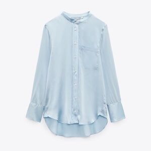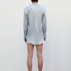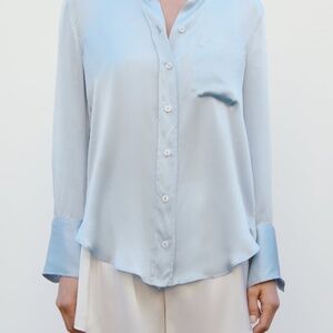 Light and breezy light blue Zara Limited Edition 100% Mulberry Silk Blouse. Size XL. New With Tags.