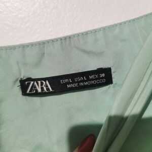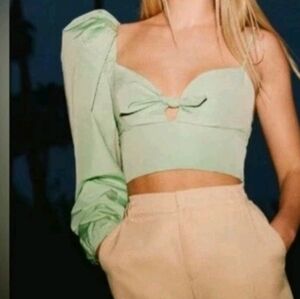 Zara Limited Edition Pastel Green Puff Sleeve One Shoulder Large Crop Top