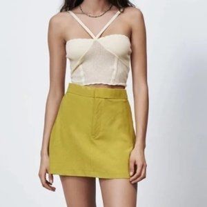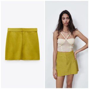 Zara Linen Chartreuse Women's Mini Skirt Size XS
