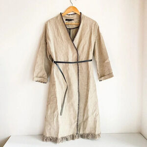 Zara Linen Striped Belted Whipstitch Simple Minimalist Coat S