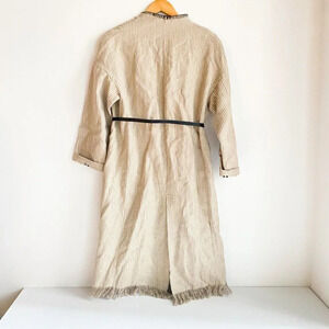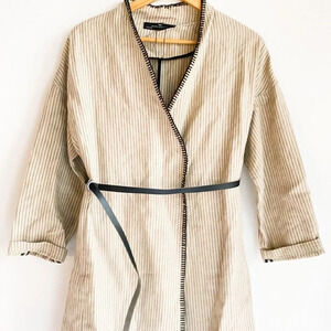 Elevate your wardrobe with this Zara Linen Striped Belted Whipstitch Simple Minimalist Coat in size S.