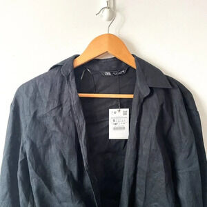Zara Linen Tie Shirt With Knot Black NWT Size Small