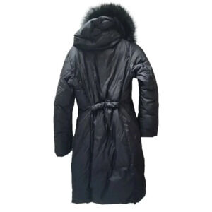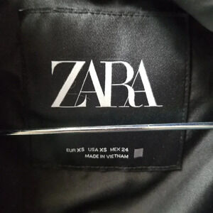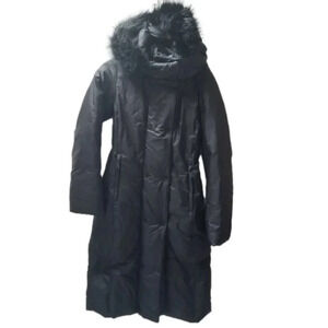Zara Long Black Puffer Coat Faux Fur Trim Hood XS