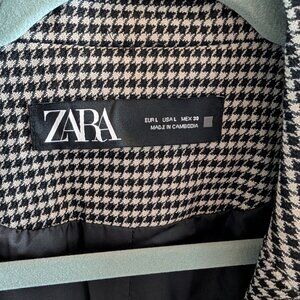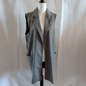 Zara Long Houndstooth Vest Pockets Belt Loops Size Large