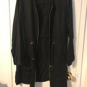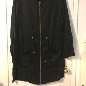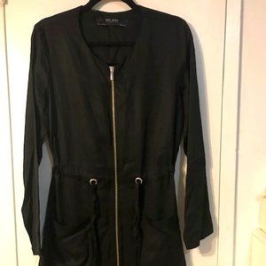 Zara long sleeve zipper dress in black with gold chain detail with strings to adjust waist and has 2 pockets.