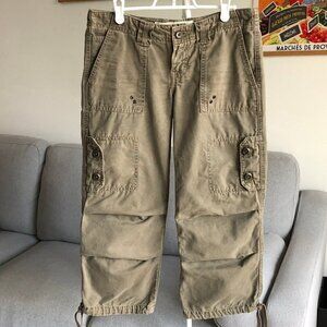 Zara Love Trf XX Cargo Khaki Green Capri Drawstring Jean 100% Cotton Women Sz 4