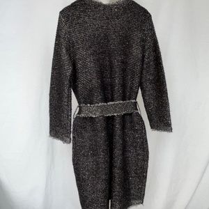 Zara (M) long, frayed-edge cardigan, with wrap tie, pockets & metallic threads