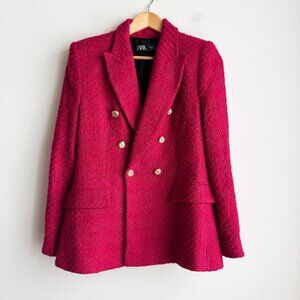Zara Magenta Pink Double Breasted Classic Blazer M