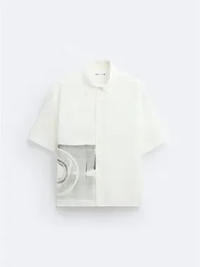 Make a statement with this contemporary, art-inspired piece from Zara. This isn't your average white button-up; the bold, black abstract graphic on the lower right side adds a sophisticated, modern edge that stands out in any setting.
