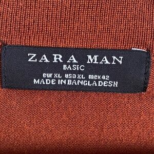 Zara Man Rusty Orange Men's Light V-Neck Sweater Size X-Large