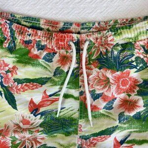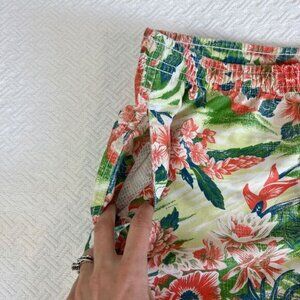 Zara Man Swimwear Men's Large Green Pink Floral Swim Shorts Trunks Hawiian