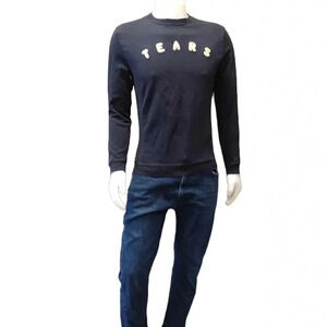 Zara Man Tears Blue Knit Embroidered Pullover Sweater Size Medium