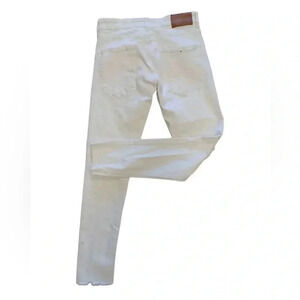 Zara Man ZMDC Skinny Raw Hem Distressed White Stretch Jeans Size 30