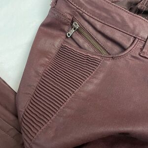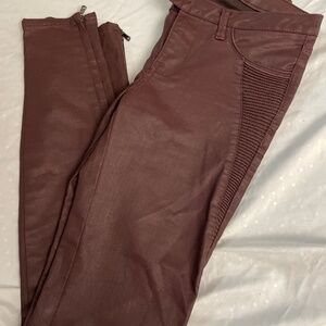 It is one of those pants with a bit of a shine giving fake leather kinda look.