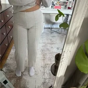 Soft cream knit wide-leg pants with a comfortable high-rise waistband and a matching top from Zara. Top is size M and pants are S. Unfortunately the pants are way too short for my liking (im 5’5 for reference) and it looks too silly in person. Only worn a few times!